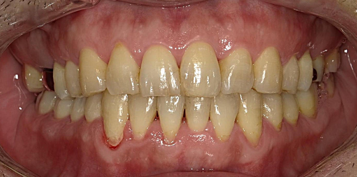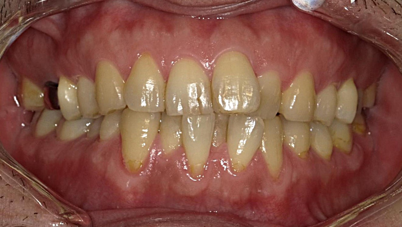 - 下顎前歯部の重度の叢生(でこぼこ)、前歯の噛み合わせが深い