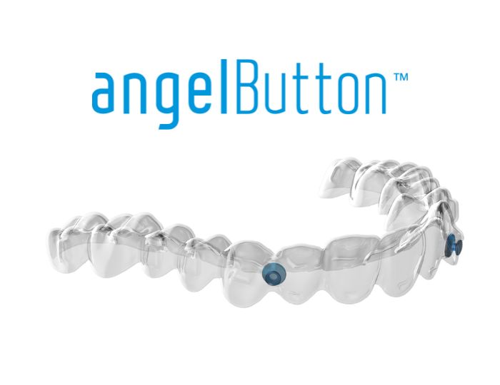 エンジェルボタンとは、エンジェルアライナーの治療で使用される補助的なパーツの一つで、必要に応じて歯に小さな樹脂素材を付与して使用します。