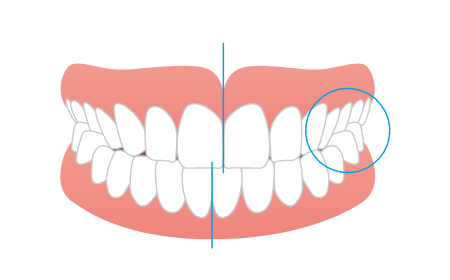 交叉咬合は、上下の歯が正しく重ならずに交差している状態です。