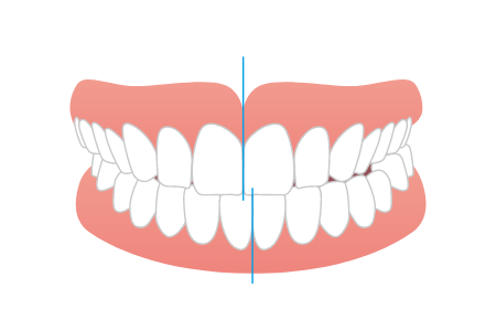 正中の不一致は、上下の中央に位置する前歯(中切歯)正中線が揃わない状態を指します。