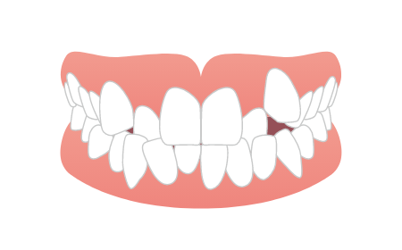 乱杭歯は、全体的に歯が不規則に並んでいる状態を指します。