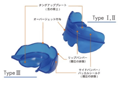 それぞれのタイプは、以下のような不正咬合に対応しています。